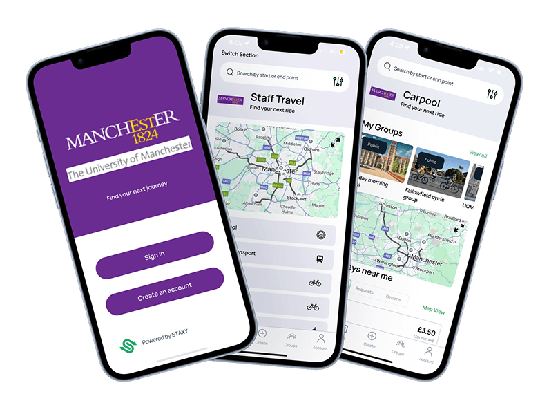 STAXY’s MaaS technology, AI-driven data collection, and travel management solutions are transforming how the University of Manchester supports sustainable travel for staff and students by streamlining journey planning, promoting active travel, and providing real-time insights. This is reducing operational inefficiencies while improving accessibility and convenience, encouraging participation in sustainability initiatives and competitions. It also offers safer, more affordable travel options, helping the University progress toward its goal of net zero carbon emissions by 2030.